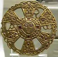 Дисковидная фибула, VII век; золото, бронза, камни, стеклянная паста; Walters Art Museum.