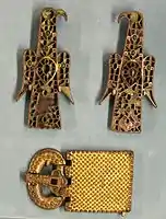 Две фибулы в форме орлов и золотая поясная пряжка; Musée de Cluny.
