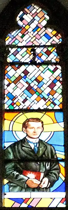 ![]() Святой Иван Мерц — витраж Капуцинской церкви Богоматери Лурдской в Риеке | |