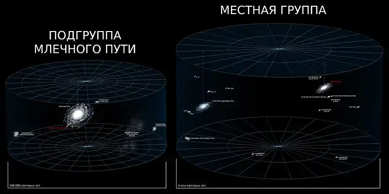 Поперечник Местной группы составляет порядка одного мегапарсека.