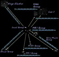 В отличие от скоплений, сверхскопления галактик не являются гравитационно связанными структурами, они принимают участие в общем расширении Вселенной, поэтому расстояния до объектов Местного сверхскопления можно измерять с помощью закона Хаббла.