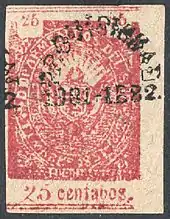Такая же надпечатка («Арекипа») производилась в мае 1884 — апреле 1885 года, но уже после взятия города восставшими противниками центрального правительства[1][5].