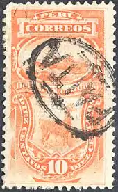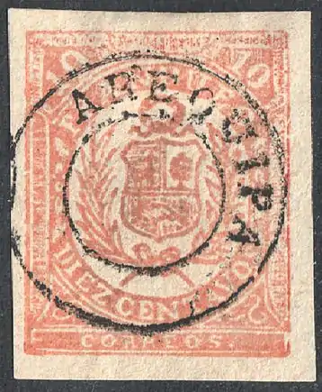 - «Arequipa» («Арекипа»)[1][2][5] в круге — в феврале 1881 — марте 1883 года на марках Перу (и на доплатных марках)[5].