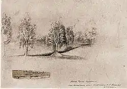 «Часто после этого я проходил это место и всегда поправлял кол. Когда приезжали ко мне гостить товарищи, я им показывал место поединка и поправлял этот кол при них. Много позднее, в одно лето короткое время гостили у меня мой добрый друг и двоюродный брат Василий Николаевич Неппен, ярый поклонник Пушкина, и хорошие друзья мои Виктор Яковлевич Краковский и Ланской. Мы все отправились на место поединка и порешили поставить Пушкину прочный столбик, для чего взяли брёвнышко в 2-3 вершка толщины и 3 аршина длины со двора фермы, добыли топор и лопату, вбили его в землю, выкрасили и каждый из нас написал не крупно подходящие строки из Пушкина. Многим лицам показывал я впоследствии это печальное место…»