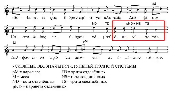 Метабола по системе (Первый дельфийский гимн, 127 г. до н. э.; фрагмент):
