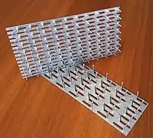 Металлическая зубчатая пластина (металлозубчатая пластина, гвоздевая пластина, МЗП) - крепежный элемент, предназначенный для соединения деталей деревянных конструкций.
