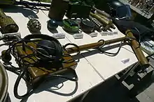 - Досмотровый металлоискатель — ручной металлоискатель предназначенный для служб безопасности. Служит для обнаружения на теле человека металлических предметов (пистолет, нож). Дальность обнаружения пистолета Макарова — до 25 см.