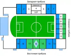 - "западной" (14 000), в центральной части которой была крытая VIP-ложа и крытые комментаторские кабины, а также места для телекамер