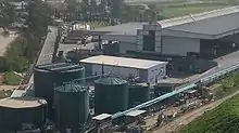 Второй побочный продукт (ацидогенный дигестат) представляет собой стабильный органический материал, состоящий в основном из лигнина и целлюлозы, а также из различных минеральных компонентов в матрице мертвых бактериальных клеток; может присутствовать и пластик. Этот материал напоминает отечественный компост и может быть использован как таковой или для изготовления низкосортных строительных изделий, таких как древесноволокнистые плиты[65][66]. Твердый дигестат также может быть использован в качестве сырья для производства этанола[67].