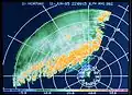 Изображение суперъячейки на метеорологической РЛС в 1960-е годы.