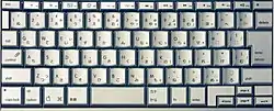 На японских клавиатурах маркируются латинские символы и хирагана. Раскладка JIS (Японский промышленный стандарт) является QWERTY-совместимой: большинство не алфавитно-числовых символов расположено на тех же клавишах, хотя некоторые из них перенесены в другие места. На клавишах с символами Q, W, E, R, T и Y также располагаются символы каны た, て, い, す, か и ん. Латинские символы являются составной частью собственно японской раскладки и обеспечивают возможность ввода ромадзи для автоматического преобразования в японский текст. Таким образом предусмотрена возможность ввода текста как каной (включая хирагану и катакану — так как они являются графическими вариациями одной азбуки, отдельно катаканой клавиши не маркируются), так и ромадзи, после чего он автоматически преобразуется в текст с кандзи. Переключение между тремя режимами обычно осуществляется специальной кнопкой, присутствующей только на японских клавиатурах, однако может быть осуществлено иными способами, предусмотренными ОС.