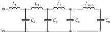 Полагая, что звенья с нечётными номерами имеют индуктивное сопротивление , а звенья с чётными номерами — ёмкостное (рис. 2), получим выражение