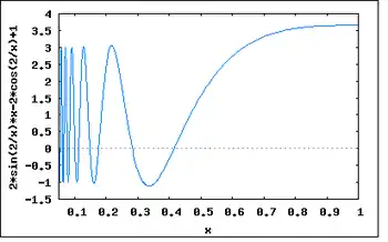 Таким образом не ограничено вблизи корня, и метод будет расходиться, хотя функция всюду дифференцируема, её производная не равна нулю в корне, бесконечно дифференцируема везде, кроме как в корне, а её производная ограничена в окрестности корня.