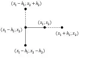 Таким образом, проведя исследующий поиск по всем координатам, мы получим новую точку с наименьшим значением функции в окрестности (обозначим её 2). Теперь можно осуществлять переход ко 2 фазе алгоритма.