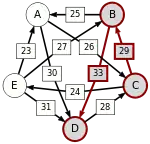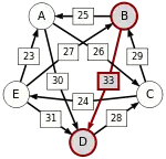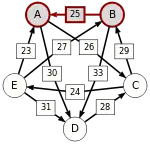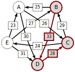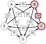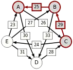 - По крайней мере для одного i из диапазона от 1 до n − 1: d[C(i), C(i + 1)] = p, где p — сила пути от кандидата X до кандидата Y, то есть p[X, Y].