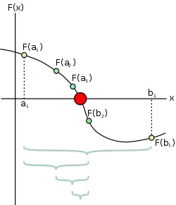 Метод бисекции или метод деления отрезка пополам — простейший численный метод для решения нелинейных уравнений вида f(x)=0. Предполагается только непрерывность функции f(x). Поиск основывается на теореме о промежуточных значениях.