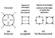 Все контакты являются эквивалентными, каждая пара из них поочерёдно выступает в роли токовых контактов (для пропускания тока), а другая пара в это время является потенциальными контактами (для измерения напряжения). Напряжение, характеризующее проводимость образца, измеряется между двумя контактами, лежащими на одной стороне образца. Холловское напряжение измеряется между контактами, расположенными по диагонали образца.