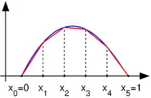 Пусть в одномерном пространстве Р1 необходимо решить следующее одномерное дифференциальное уравнение для нахождения функции на промежутке от 0 до 1. На границах области значение функции равно 0: