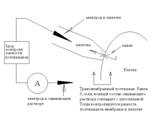 Во-первых, она не позволяет с достаточной надёжностью измерять, а, следовательно, и задавать трансмембранную разность потенциалов — поскольку оба электрода — как пипеточный, так и внешний, находятся по одну сторону мембраны. Вообще говоря, можно, используя омывающий раствор с ионной композицией, повторяющей состав цитоплазмы, деполяризовать мембрану вне пипетки, так что разность потенциалов между внешним электродом и цитоплазмой исчезнет, а тогда разность потенциалов между электродами окажется равна трансмембранному потенциалу — но все это весьма приблизительно, так как точный состав цитоплазмы нам неизвестен.