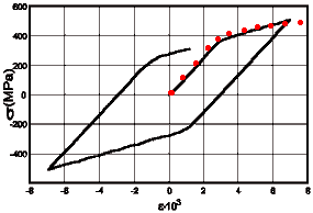 Например, титановый образец при циклическом нагружении (растяжение-сжатие). Диаграмма деформирования показана на следующем рисунке: