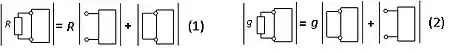 В основе метода схемных определителей лежат формулы Фойснера для выделения параметров двухполюсных элементов[1][2], которые могут быть представлены в схемно-алгебраической форме[3]:
