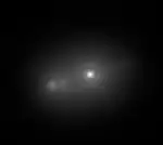 ![]() | Усреднённое изображение, полученное на основе 25 000 наиболее качественных снимков (50 % всей выборки) с короткой выдержкой после их сдвига таким образом, чтобы наиболее яркий пиксель каждого снимка находился в общей для всех снимков точке. Здесь заметно уже три объекта. | |
