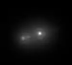 ![]() | Усреднённое изображение, полученное на основе 50 000 снимков с короткой выдержкой, почти идентичное фотографии с 21-минутной выдержкой (50 000 кадров/40 секунд) в условиях низкой астрономической видимости. Выглядит как слегка вытянутое изображение обыкновенной звезды. Полуширина видимого диска составляет около 0,9 угловых секунд. | |