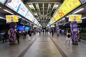 | CS | Саям | Siam | Пересадка через платформу на линию Силом. Трёхуровневая станция с островными платформами. |