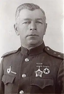 В мае 1943 года был назначен на должность командира 192-й стрелковой дивизией, а с 14 по 30 июля исполнял должность командира 62-го стрелкового корпуса, затем снова был назначен на должность командира 192-й стрелковой дивизии, которая принимала участие в боевых действиях в ходе Смоленской операции. В декабре был отстранён от занимаемой должности, после чего состоял в резерве офицерского состава Военного совета Западный фронт.