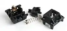 Самый распространённый стандарт выключателей механической клавиатуры, с крестообразным штоком. В больших количествах продаются готовые клавиатуры, выключатели россыпью, клавиши россыпью, скобы-стабилизаторы. Совместимые выключатели производятся Kaihua (Kailh)[9], Gateron[10], Gaote (Outemu)[11], Greetech[12], TTC[13], A4Tech (Bloody), Razer, Logitech (GX[14]) и другими.
