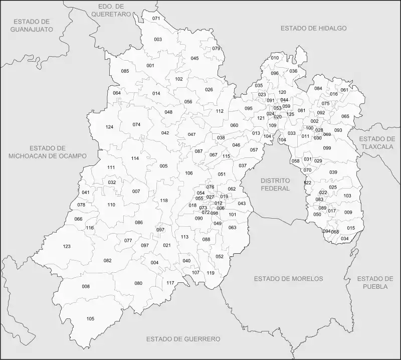 Не прекращавшаяся борьба между либералами (федералистами) и консерваторами (унитаристами) в XIX веке привела к серьёзным последствиям. Из территории штата были выделены области для будущих штатов Идальго, Морелос, Герреро. Во время американо-мексиканской войны, войска США оккупировали Толуку и Мехико, а правительство штата было вынуждено временно переехать в Сультепек.