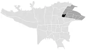 Расположение Мехрана (чёрный цвет) в муниципальном округе № 4 (тёмно-серый цвет) Тегеранского мегаполиса