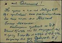 - Б. Бурлак пишет, что Мехтиева продолжал поддерживать «друг по академии генерал Морозов»[17]. Вероятно, речь идёт о Герое Советского Союза генерал-майоре В. Д. Морозове, арестованном «31 декабря 1947 года <…> органами военной контрразведки за отдельные критические высказывания в частных разговорах»[18], «о которых он толком и не помнил»[19].