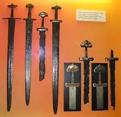 Около VIII — начала IX века получает распространение каролингский меч, или меч эпохи викингов (также условные современные обозначения). На самом деле мечи данного типа производились главным образом во Франкской империи, а к викингам обычно попадали как добыча или товар (разумеется, существовало и местное производство), однако наибольшее количество находок связано именно со Скандинавией, где сохранялся языческий обряд помещения в могилу погребального инвентаря, включая оружие.