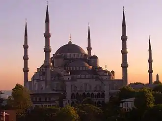 - Мечеть с двумя минаретами — купольное здание с главным входом, фланкированными двумя высокими цилиндрическими минаретами. Более характерна для Ближнего Востока и Средней Европы.