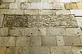 На стене мечети имеется надпись, сделанная крупным, ясным почерком насх с элементами сулса. Фон надписи украшен растительным орнаментом:
