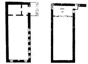 ![]() Слева план первого яруса мечети (для мужчин), справа план второго яруса (для женщин) | |