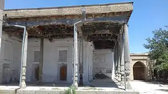 Находится в историческом центре так называемого старого города, в 350 метрах к северо-западу от площади и ансамбля Регистан, внутри территории махалли, и вокруг окружен частными домами-дворами. Ныне является недействующей мечетью, и по состоянию на август 2018 года находится в обшарпанном состоянии. Мечеть представляет собой небольшое здание, с двух сторон которого имеет айван с девятью деревянными резными колоннами, и рядом имеет небольшое вспомогательное здание, в котором на небольшой высоте находится специальное место для муэдзина. Находится в довольно большом дворе, где имеется небольшой хауз. Вместе с остальными архитектурными, археологическими, религиозными и культурными памятниками Самарканда входит в список Всемирного наследия ЮНЕСКО под названием «Самарканд — перекрёсток культур».
