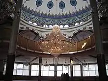 Две лестницы ведут на второй этаж в мужской молитвенный зал. Зал может вместить до 3 000 человек. Люстра в форме тюльпана подарена христианской и еврейской общинами.
