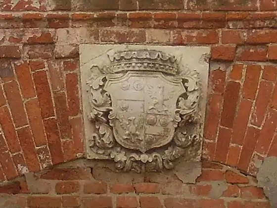 Башня с въездными воротами с гербом фамилии баронов Боде в усадьбе Мещерское