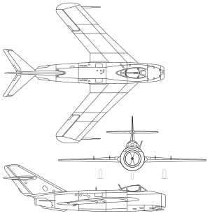 - МиГ-15бис 45˚ (СИ, СИ-2): МиГ-15бис, оборудованный новым крылом - прототип МиГ-17.