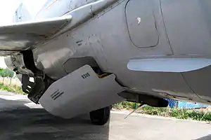 На фюзеляже установлены два передних тормозных щитка с углом отклонения 25° и один задний с углом отклонения 40°. В хвостовой части фюзеляжа имеется ниша для тормозного парашюта, выпускаемого в момент касания поверхности ВПП главными колёсами шасси. Противопомпажные автоматические створки находятся с обеих сторон фюзеляжа между 2-м и 3-м шпангоутами, а между 9-м и 10-м шпангоутами — створки воздушной подпитки двигателя, открывающиеся на земле и при взлёте. Между шпангоутами 2 и 6 в верхней части фюзеляжа располагается отсек радиоаппаратуры и электрооборудования. Нижняя панель отсека служит нишей установки и уборки передней стойки шасси.