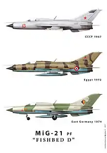 - 01 — Mikoyan-Gurevich MiG-21PF (недоступная ссылка). Дата обращения: 16 ноября 2014. Архивировано 29 ноября 2014 года.