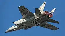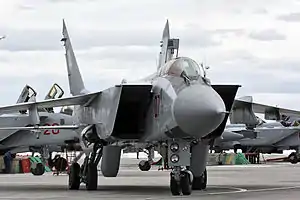 МиГ-31 — советский и российский двухместный сверхзвуковой высотный всепогодный истребитель-перехватчик дальнего радиуса действия. Разработан в ОКБ-155 (ныне АО РСК «МиГ») на базе МиГ-25 в 1970-х годах. Первый советский боевой самолёт четвёртого поколения[2].