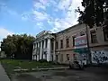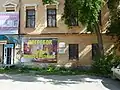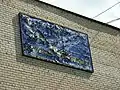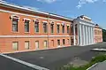 Здание заводоуправления до реставрации (2015): фрагмент фасада с памятными досками
