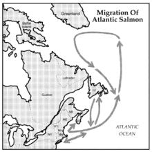 Миграции отличаются от тех перемещений рыб, которые возникают во время обычной повседневной деятельности, большим масштабом и продолжительностью.[1] Некоторые особые типы миграции являются анадромными, когда взрослые рыбы живут в море и мигрируют в пресную воду для нереста, и катадромными, когда взрослые рыбы живут в пресной воде и мигрируют в солёную воду для нереста.