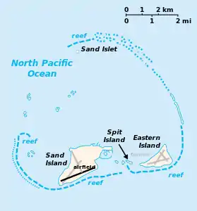 В атолл входят острова Сэнд (Песчаный) и Истерн (Восточный), а также небольшой островок Спит между ними.
