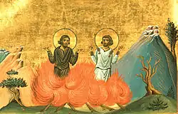 ![]() Мученики Максим и Феодот Адрианопольские. Миниатюра Минология Василия II. Константинополь. 985 г. Ватиканская библиотека. Рим | |