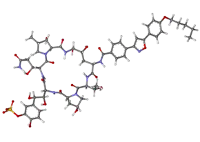 | ИЮПАК | {5-[(1S,2S)-2-[(3S,6S,9S,11R,15S,18S,20R,21R,24S,25S,26S)-3-[(1R)-2-carbamoyl-1-hydroxyethyl]-11,20,21,25-tetrahydroxy-15-[(1R)-1-hydroxyethyl]-26-methyl-2,5,8,14,17,23-hexaoxo-18-[(4-{5-[4-(pentyloxy)phenyl]-1,2-oxazol-3-yl}benzene)amido]-1,4,7,13,16,22-hexaazatricyclo[22.3.0.09,13]heptacosan-6-yl]-1,2-dihydroxyethyl]-2-hydroxyphenyl}oxidanesulfonic acid |