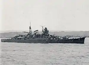 ![]() Крейсер «Микума» в заливе Кагосима в 1939 году |